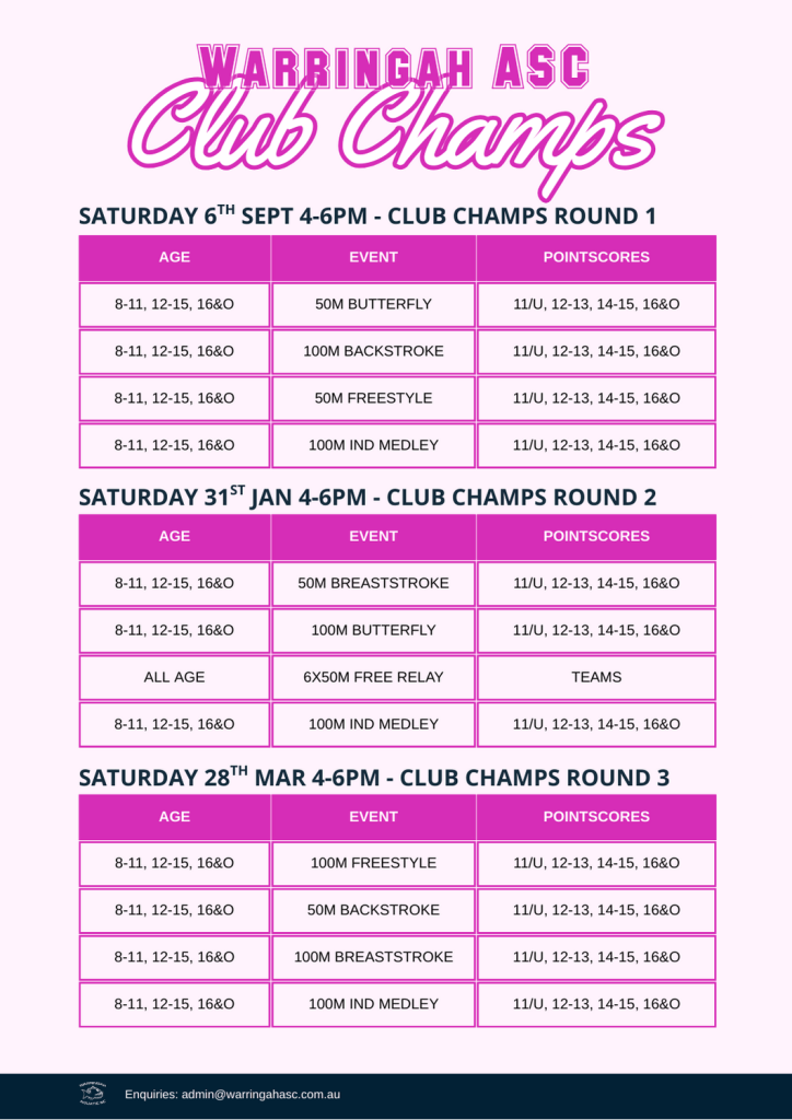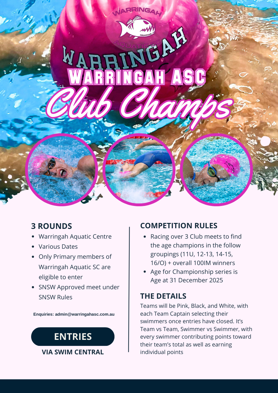 + Only Primary members of Warringah Aquatic SC are eligible to enter