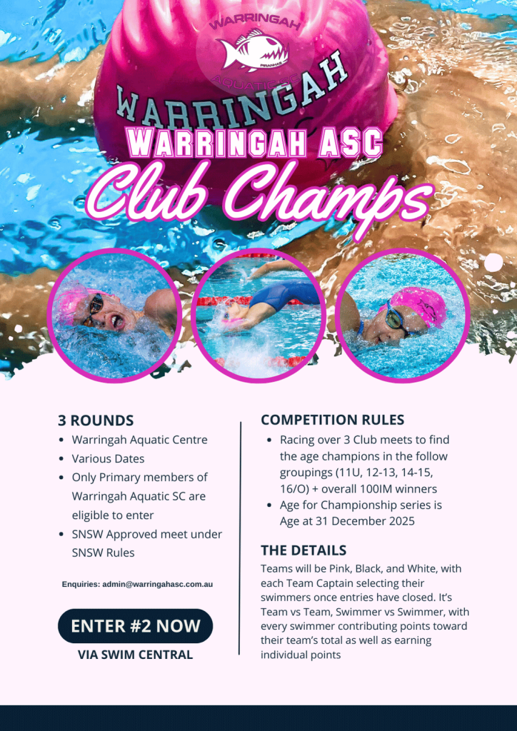 + Only Primary members of Warringah Aquatic SC are eligible to enter