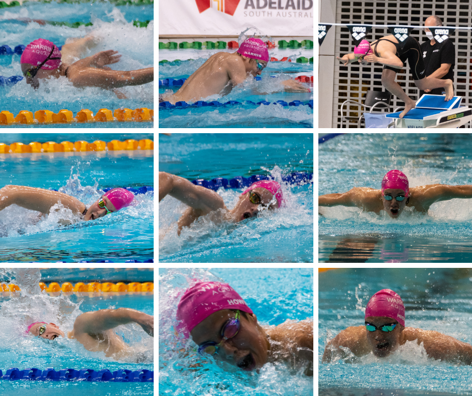 Less than a month later we headed back to a cold but mostly sunny Adelaide to battle it out with the best of the best at the Australian Commonwealth Games Trials. Our Team of 6 – Josh, Nadine, Ryan, Bailey, Dom & Sam – under the bright lights of Amazon Prime Video swam their hearts out in impressive swims in 12 individual events. What an amazing experience to compete with the Australian Dolphins and other International swimmers!